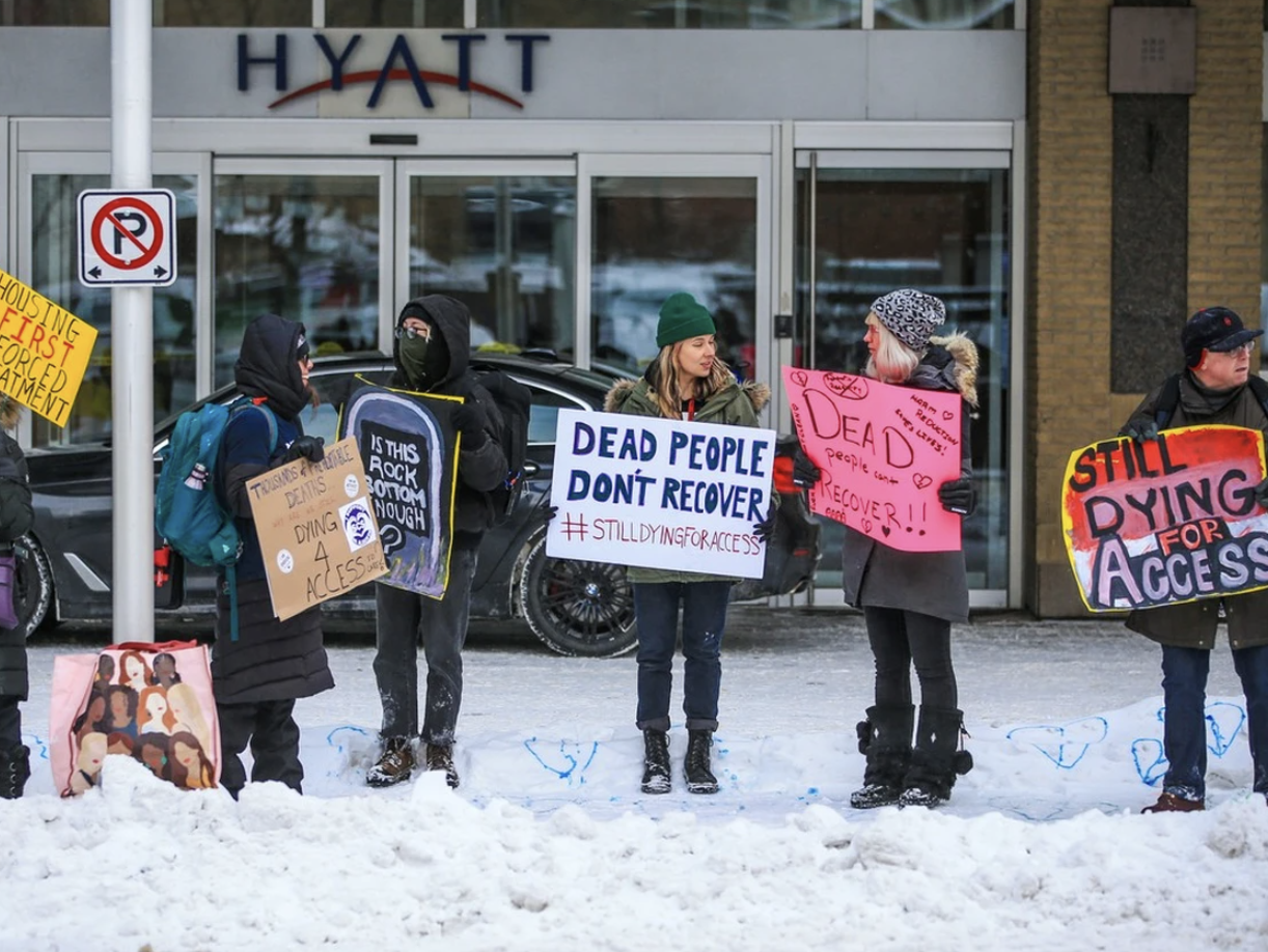According to its timelines of planned and completed tactics, the AACP Roadmap was circulated in late January to early February 2023. Recovery Capital Conference (aka Alberta Recovery Conference) took place in Calgary on February 21-22, 2023, and a group of us protested it on the basis that the conference advances exclusionary and coercive policy that harms people who use drugs.