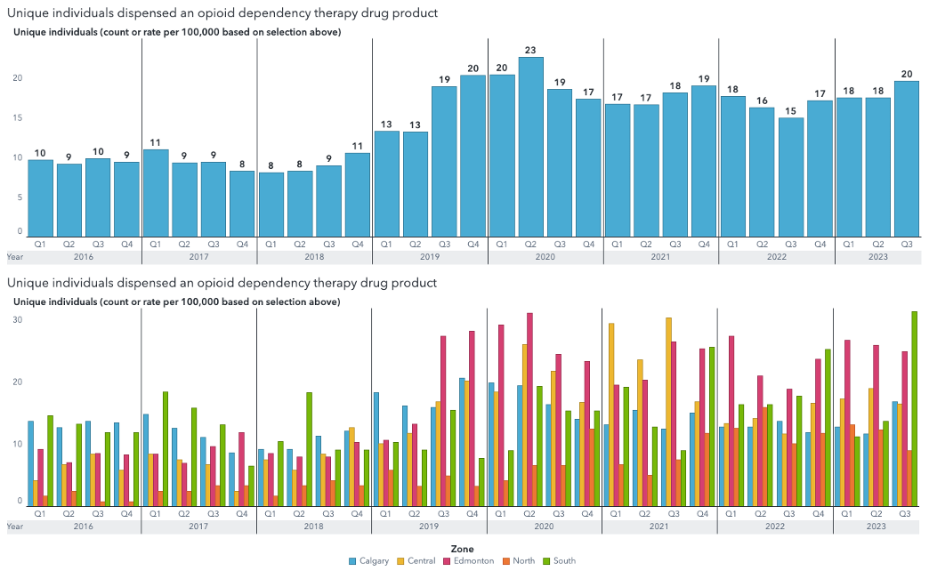 But now, perhaps in response to the collapse of the Alberta model’s claims to success, we are seeing increased hydromorphone dispensing for opioid users to a 3-year high in the third quarter of 2023. This was limited to onsite consumption under supervision early in 2023, and the Alberta government continues to refuse federal programs. Alberta’s Opioid Dependency Program also has yet to fulfill its 2022 promise to dispense fentanyl and heroin.