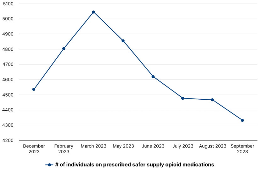 BC’s regional health systems appear to have made up their minds, with safe supply prescribing in BC already in a nosedive since reaching a peak in March 2023. These programs primarily comprise fentanyl and hydromorphone dispensing. Comparable data aren’t currently available for other provinces.