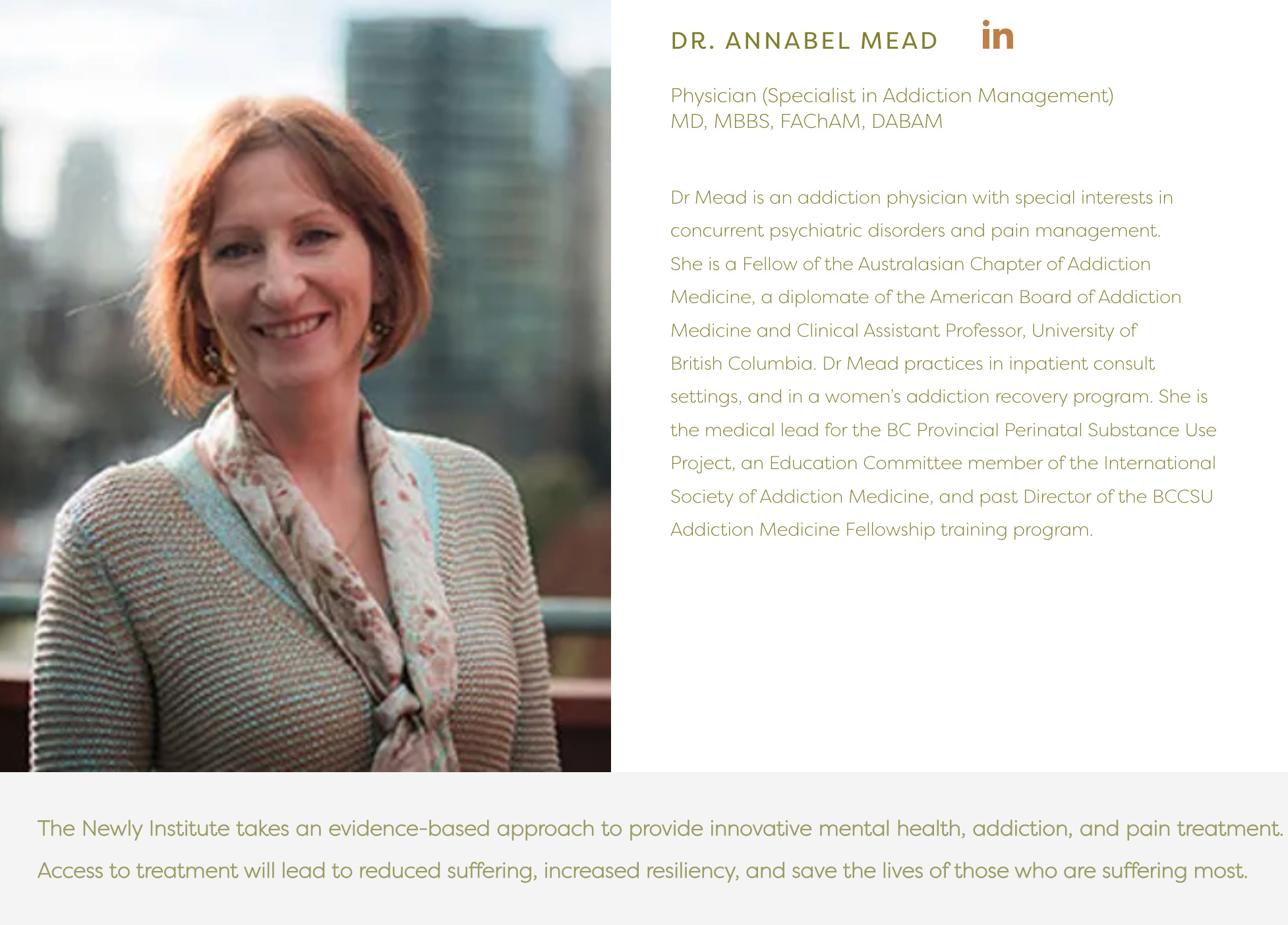 As a member of the medical advisory board for the Newly Institute, Annabel Mead is also linked to the Alberta Government’s drug policy model. The same day the Alberta Government announced its Narcotic Transition Services program, which throttled hydromorphone prescribing, they also announced that psychedelics therapy would be legalized — and the Newly Institute would be first allowed through this gilded gate.