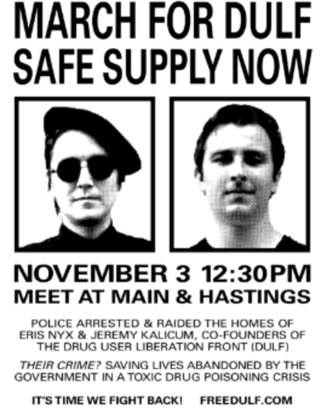 The central action is the March for DULF, organized by the Vancouver Area Network of Drug Users at Main & Hastings, 12:30PM. If you’re in Vancouver, let them know you’re coming and bring everyone you know! If you’re in Victoria, a parallel action is being planned - keep an eye out for it. Outside of these, take to social media to show support or plan a banner drop in your area.