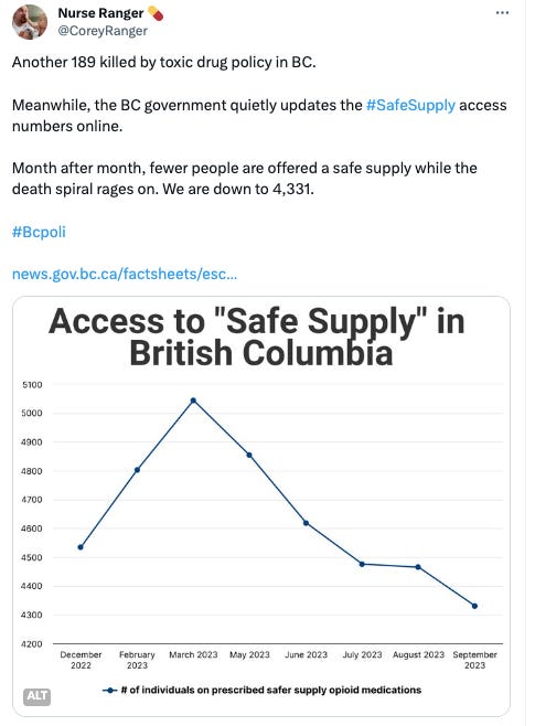 There is a real societal tendency to warehouse people rather than support them in their lives as they exist—as clear an example of stigma as you can find. There is also an emerging strain of paternalism that insists stigma can solve drug poisoning. National Post Opinion continues to adopt this point, which was propagated at Alberta’s safe supply committee by Michael Shellenberger echoing the chief of staff to the Alberta premier, Marshall Smith.