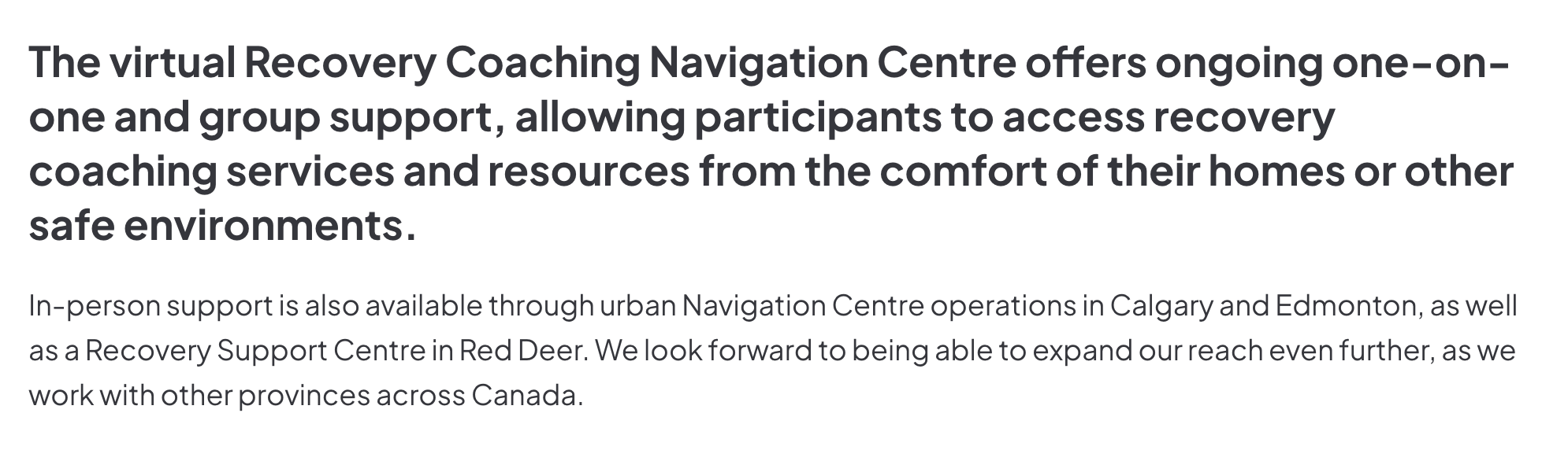 Bowline Health, Simon House and Recovery Acres were also asked whether recovery coaches are currently required to access residential programs in Alberta. Bowline denied communicating any requirement and told Drug Data Decoded to ask the recovery centres. Simon House and Recovery Acres confirmed that they work with Bowline, but coaches are not required to access their programs.