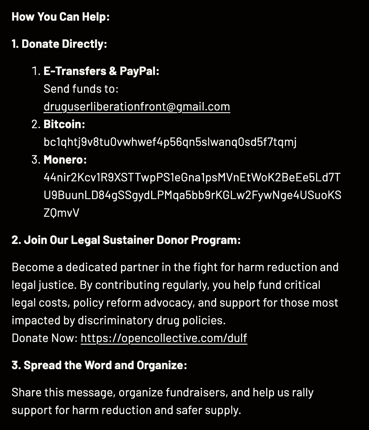 The question is not whether allowing access to regulated drugs is the right thing to do –– that is now confirmed. The question is whether enough collective will can be mustered to overcome the carceral bureaucracy keeping regulated drugs out of reach. DULF can do that –– with your help.