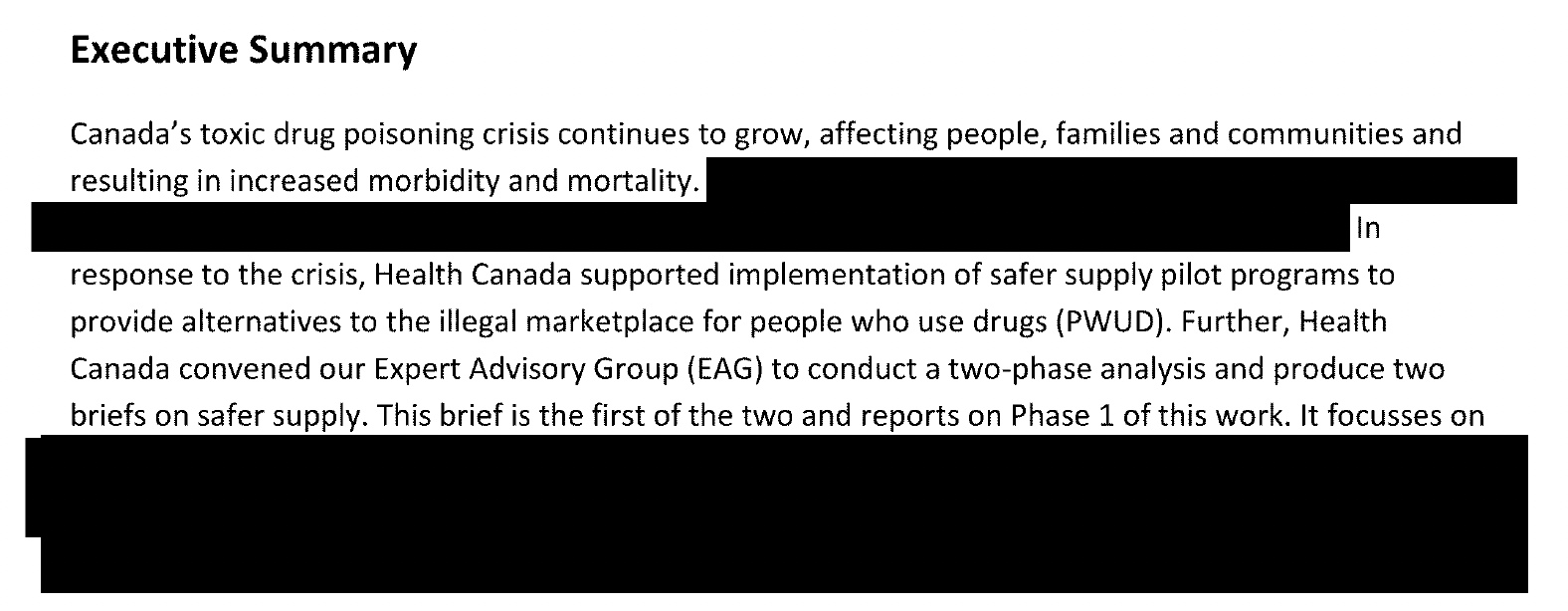 In parallel with the request for the expert reviews, Drug Data Decoded submitted a request for records revealing why the reports had not been made public. People named within that request included anyone within the Controlled Substances and Overdose Response Directorate responsible for receiving advice from the Expert Advisory Group.